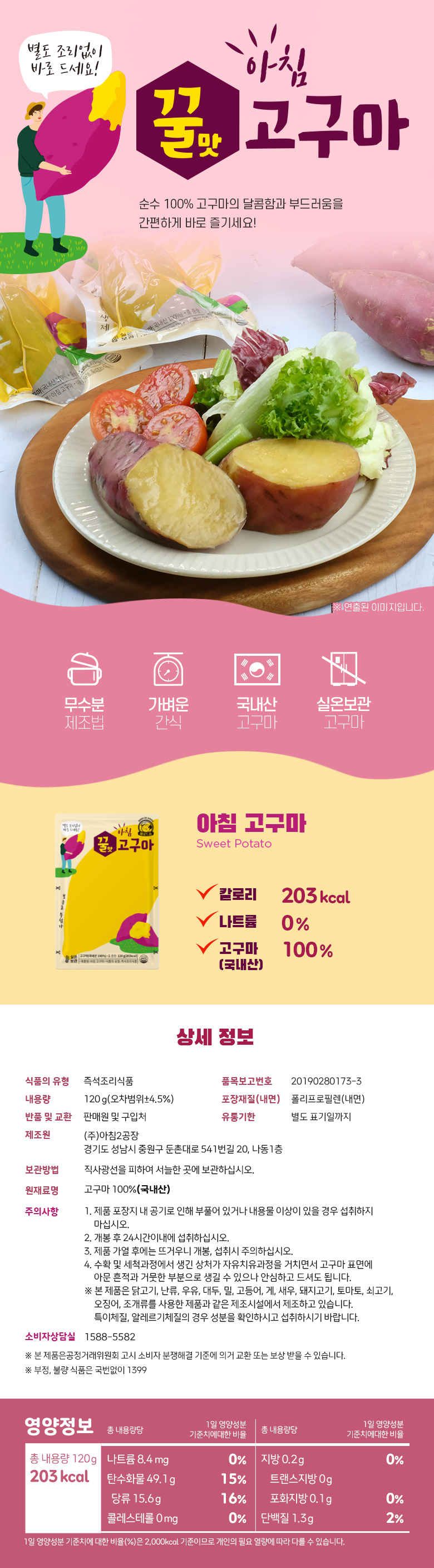 순수 100% 고구마의 달콤함과 부드러움을 간편하게 바로 즐기세요!